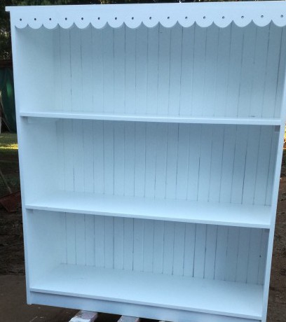 Available in any of our standard colours,. storage unit can be customized to fit in certain area. Beautiful bookcase with scalloped trim and grooved back –