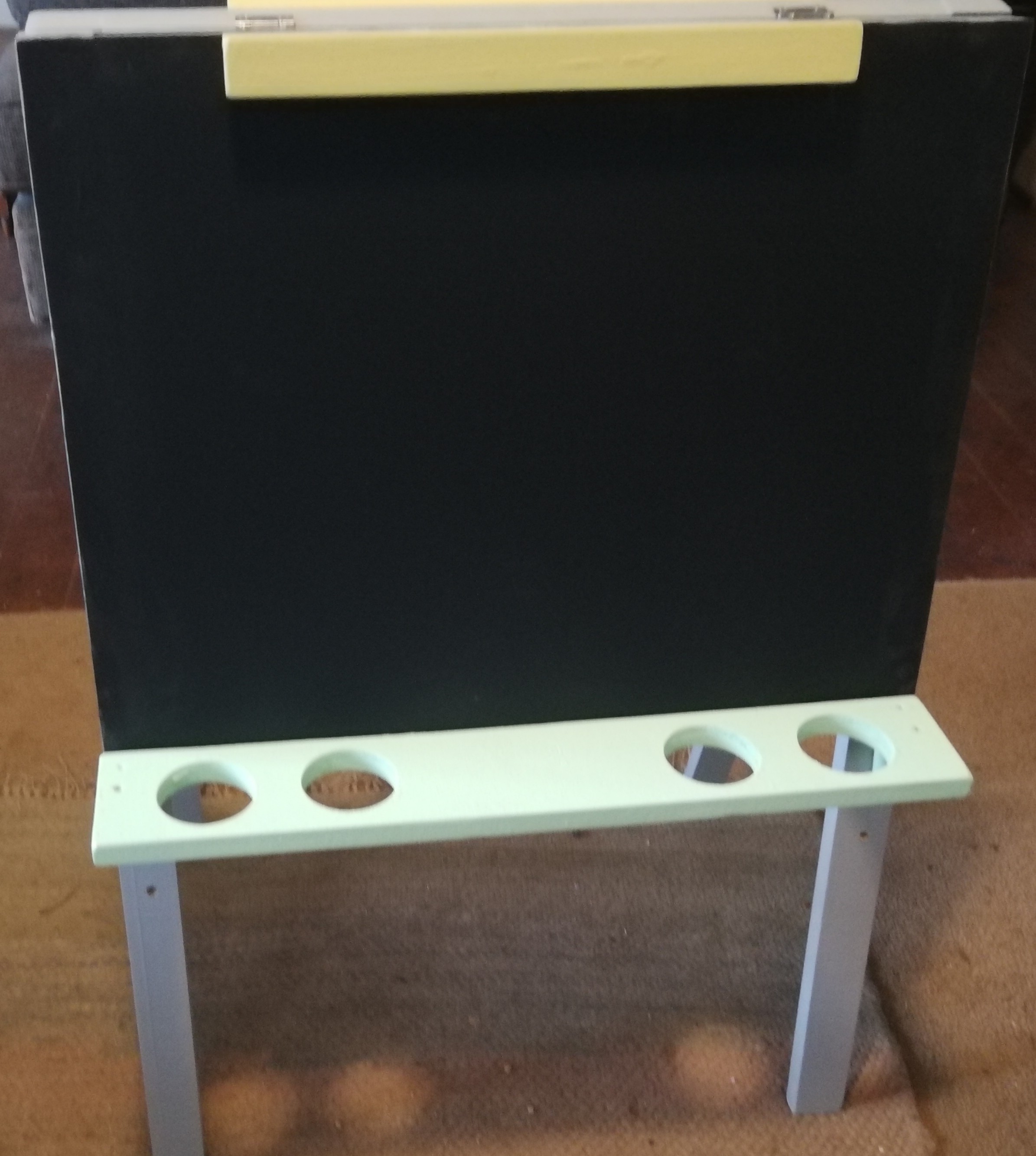 DOUBLE SIDED BLACKBOARD, WOODEN BLOCKS (ALSO AVAILABLE IN A BOX), PLAY BED, PUPPET THEATRE Awesome double sided blackbaord Double sided blackboard in pastel colours 54 different shaped blocks . also available in a wooden box