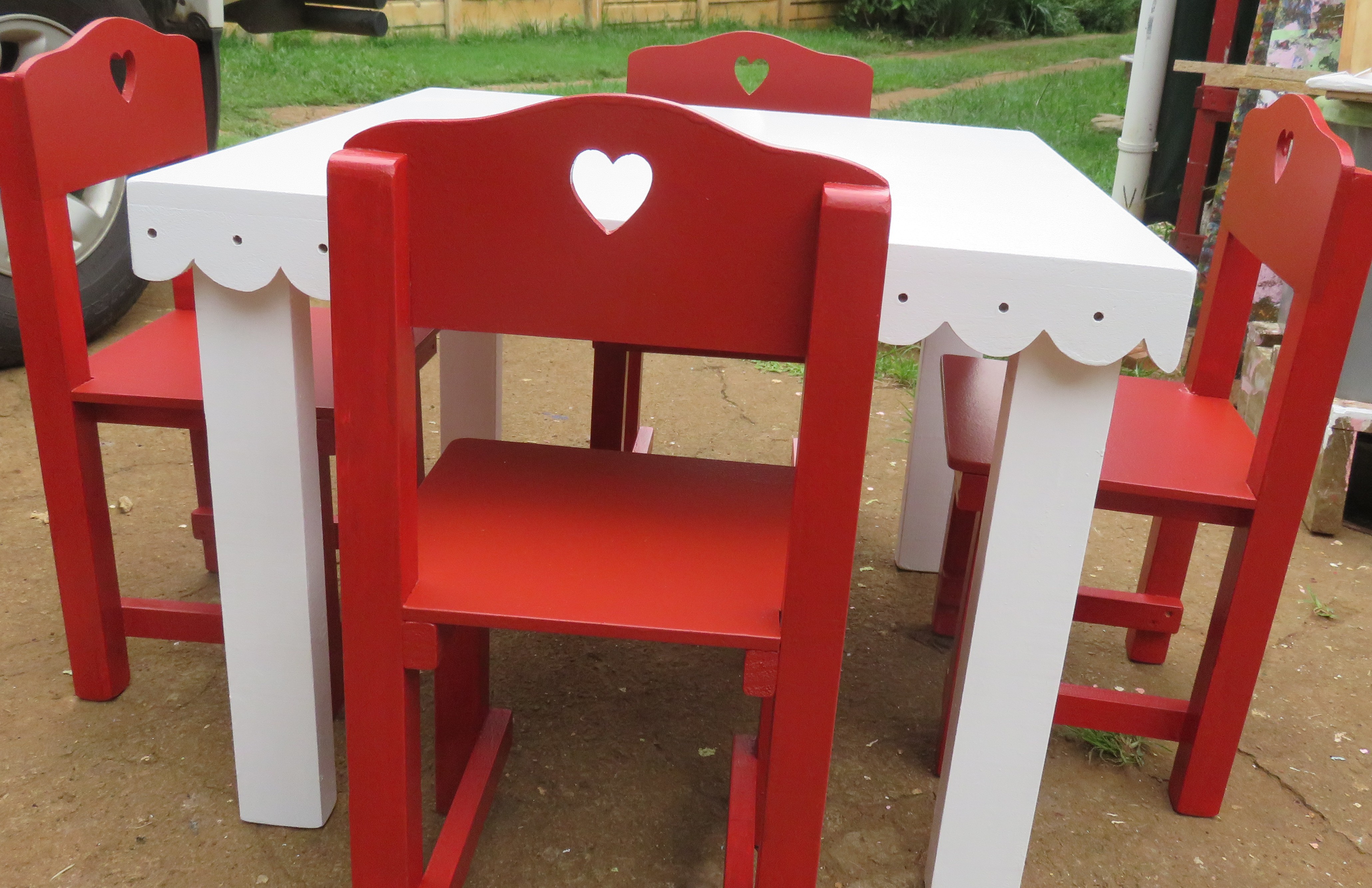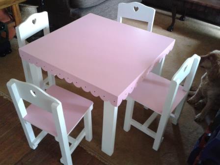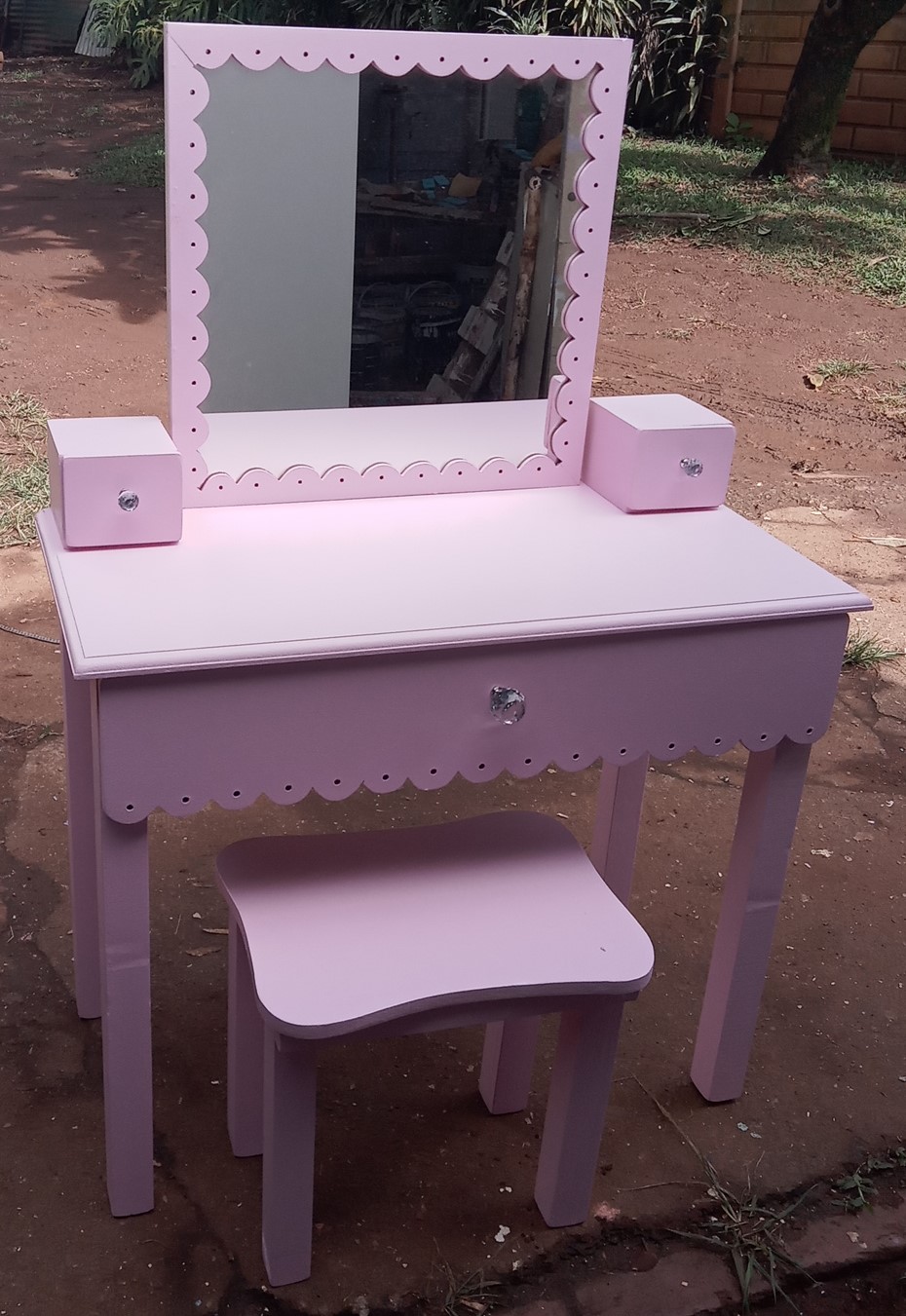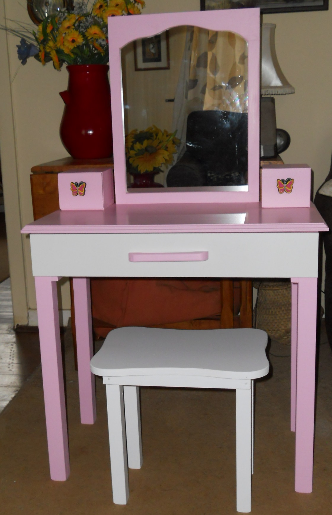 Beautiful table and chair sets suitable for up to 8 years old, but can make them taller on request to suit slightly older children . Dressing table also suitable